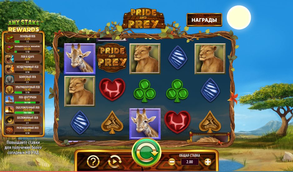 - The progressive jackpot in Pride and Prey keeps increasing with each player’s bet.