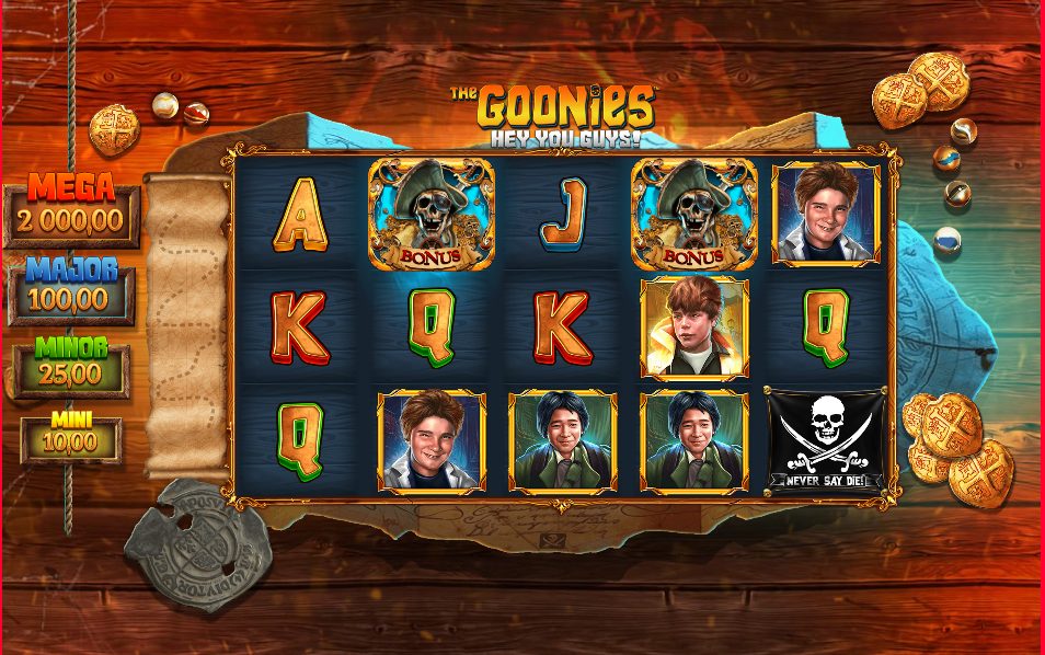 The Goonies Hey You Guys! online casino slot game is based on the popular 1985 adventure-comedy film, “The Goonies.” The game brings the beloved characters and nostalgia of the movie to life in an exciting slot format.